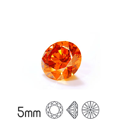 Kubisk zirkonia, 5mm, Preciosa round brilliant cut, Orange, 2/10st