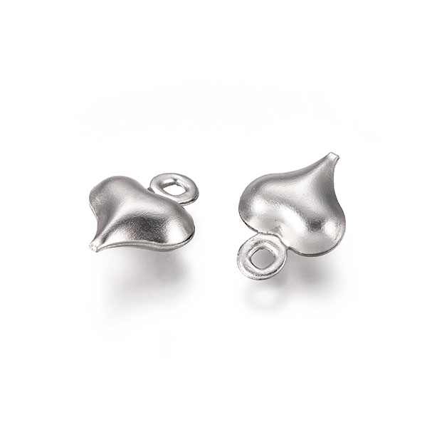 Små söta hjärtan av rostfritt kirurgiskt stål. Hjärtberlockerna är ca 8.5x6mm stora inkl. öglan, dubbelsidiga och ihåliga vilket gör dem väldigt lätta. Använd dem som nästintill viktlösa berlocker i örhängen och andra smycken eler häng ett litet hjärta i en förlängningskedja som ett gulligt avslut.Priset av ser en 10-pack.