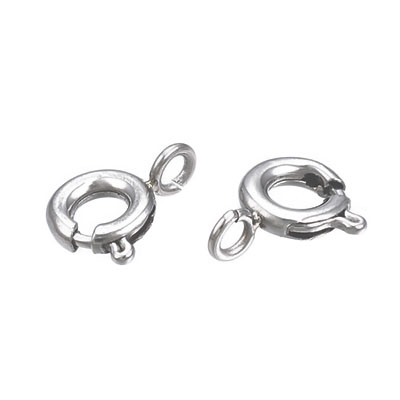 Starka, pålitliga springlås av rostfritt kirurgiskt stål. Ringen i låset har en ytterdiameter på ca 5,4mm. Den totala låsstorleken inkl. haken och öglan är ca 6,5x8mm. Fästöglan är öppningsbar och har en innerdiameter på 1,7mm. Låset öppnas up till ca 1,2-1,3mm.